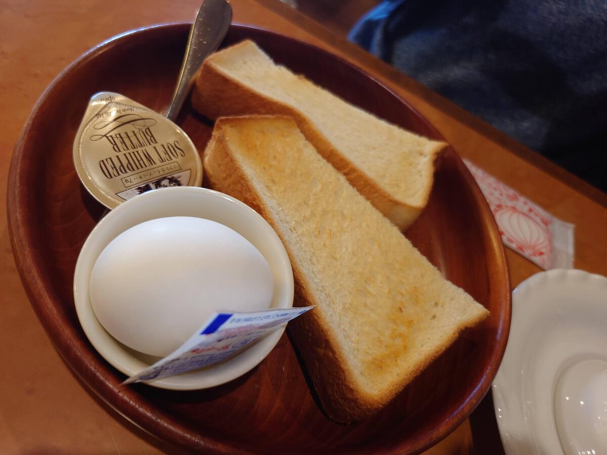 基本はトースト2切にゆで卵が付いてくる、そこにトッピングで内容が変わる。