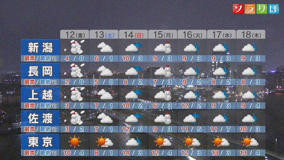 今夜から再び雪が強まり、あす12日(金)にかけて、ふぶくでしょう。日曜から月曜も荒れた天気になりそうです。