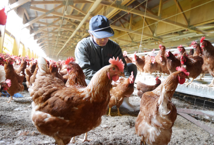 こちらでは、ニワトリにできる限りストレスを与えずに育てる“平飼い”のスタイルを取り入れています。