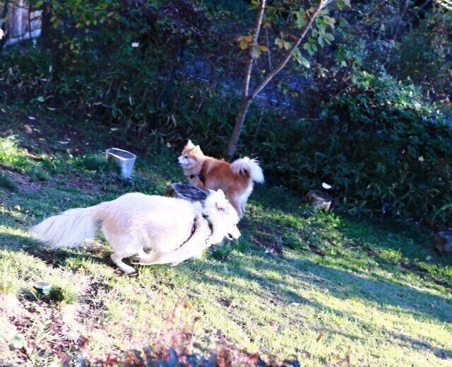 そんなことはおかまいなしに、福助は未だにバトルを挑んでいる。もう11才なのに、やっていることはガキンチョのまんまである。もし大吉がいなかったら、こんな“末っ子”丸出しの性格にはなっていなかっただろう。もし仮に、大吉がいない状態で福助を迎え、後から別の犬を迎えていたなら、兄の顔になったんだろうか。それは絶対ない気がするが。