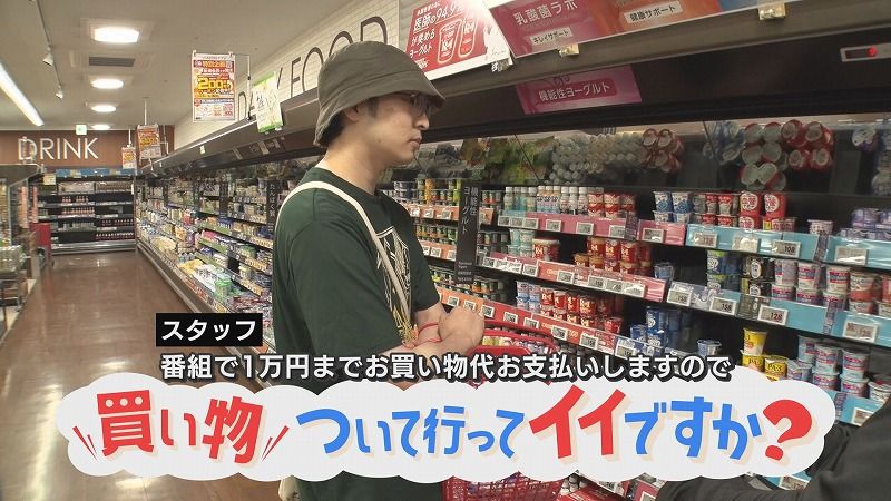 番組スタッフ:「すみません突然。番組で1万円までお買い物代お支払いしますので、買い物についてっていいんですかっていう企画なんですよ」修平さん:「はいはい」