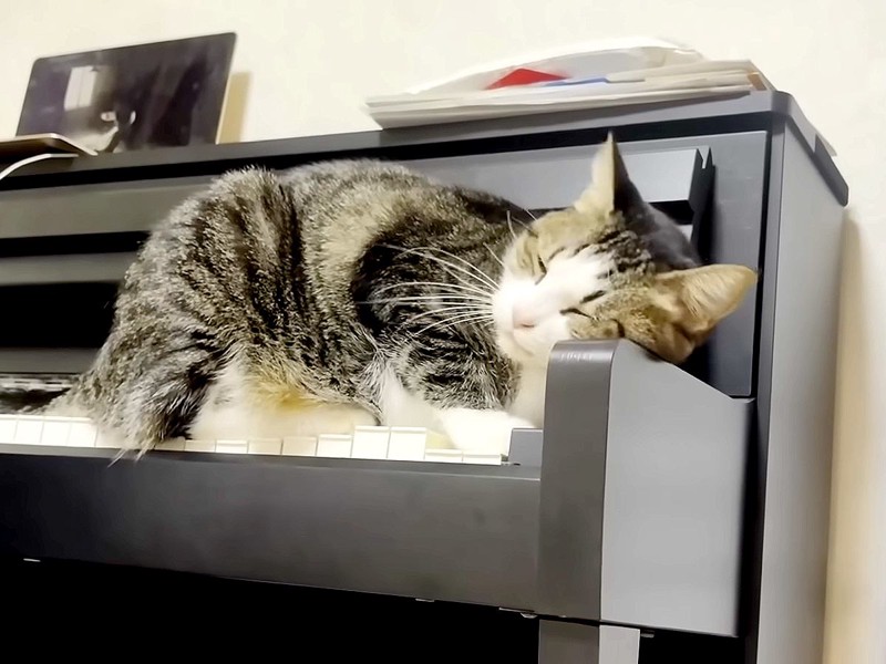 YouTubeチャンネル「ひのき猫」に投稿されたのは、こちらのお家の飼い猫オデコちゃんと娘さんのある日の出来事。この日娘さんはピアノの練習をしていたんだそう。するとオデコちゃん、おもむろにピアノへ駆け寄って行ったのだとか。