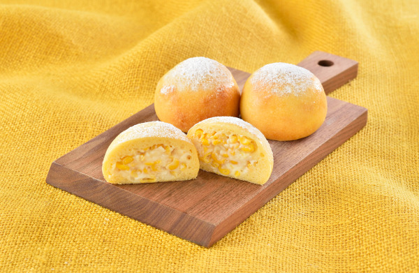 コーンパンの生地は北海道産小麦を100%使用し、生地にもコーンピューレを配合し香り豊かに仕上げています。フィリングのコーンはとっても甘い「十勝スーパースイートコーン」を使用。会場で焼き上げたホカホカもちもちのコーンパンをぜひ召し上がれ!