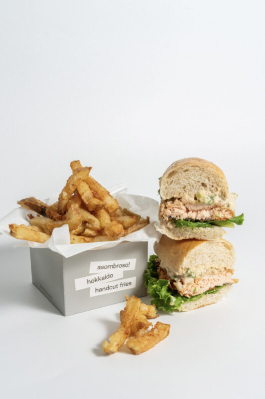 新千歳空港で大人気のasombroso!が九州初出店です。「アソブロ!コンボ!」は北海道産じゃがいもを手切りで仕上げたフライドポテトと、自社工場で丁寧に作るフィッシュバーガーの贅沢セット。外はカリッ、中はほくほく。