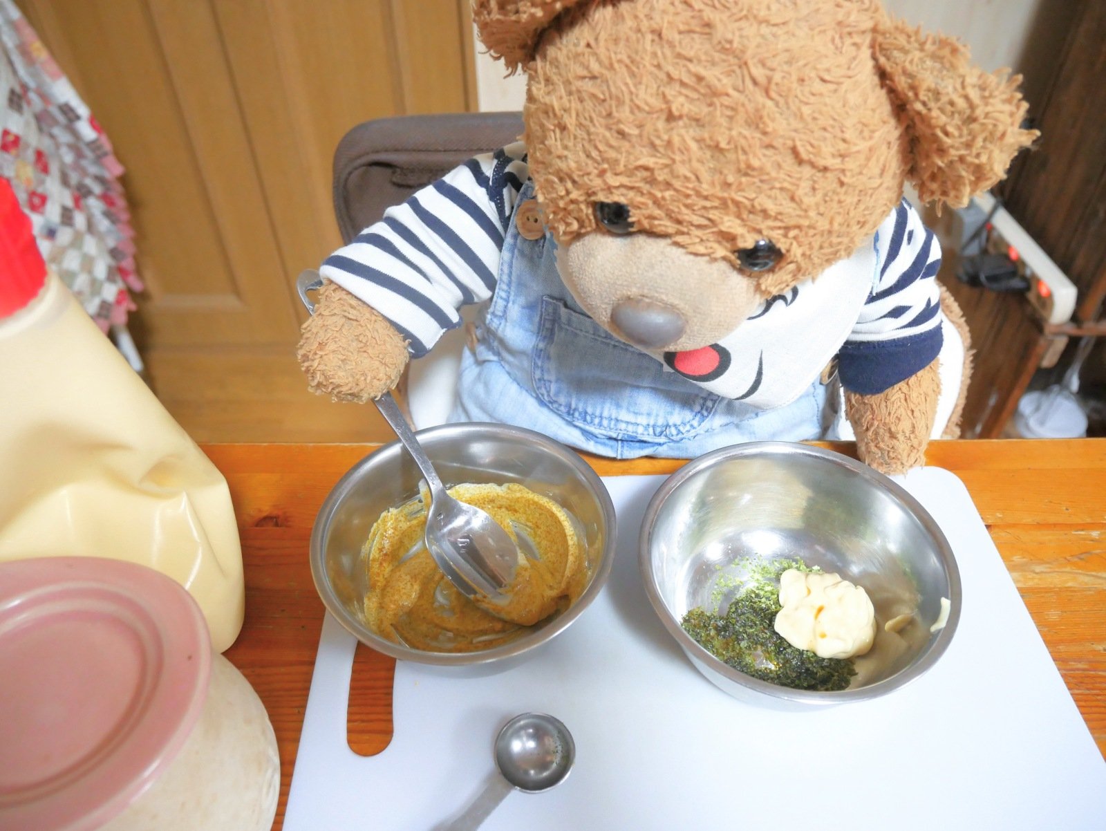 1. カレーマヨ、青のりマヨの材料をそれぞれ混ぜ合わせる。