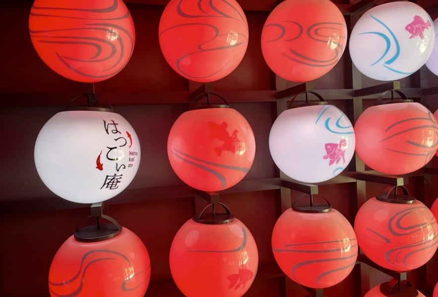 1階で外に出られるドアを見つけ、「どこに続くのだろう?」と思いながら小道をしばらく進むと、鯉や金魚をメインに展示している「はつこい庵」に辿り着きました。