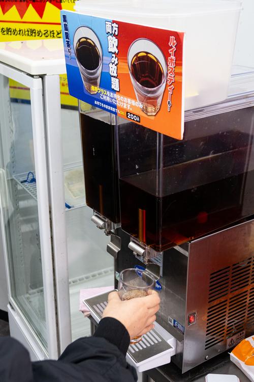 店内には200円で利用できる飲み放題サービスがあり、『ルイボスティー』と『黒烏龍茶』の2種類を自由に楽しめます。脂っこいラーメンの後にさっぱりできるのはありがたいですね。