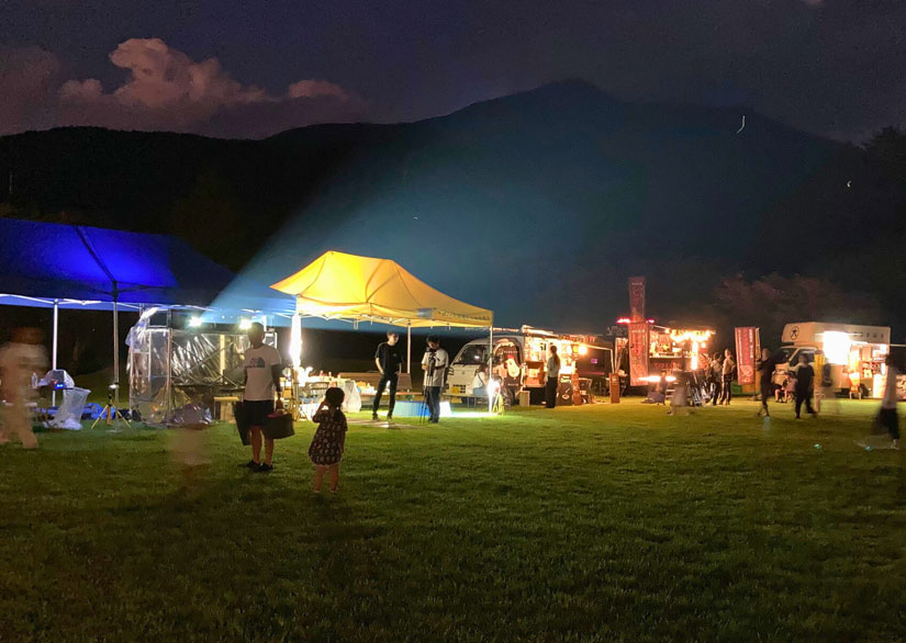 ドリンクやタンドリーチキンなどを味わえるキッチンカーが集合。16時から20時20分まで営業予定。11月16日(日)は木曽ダンスフェスタ開催のため、一部のキッチンカーは午前中から。