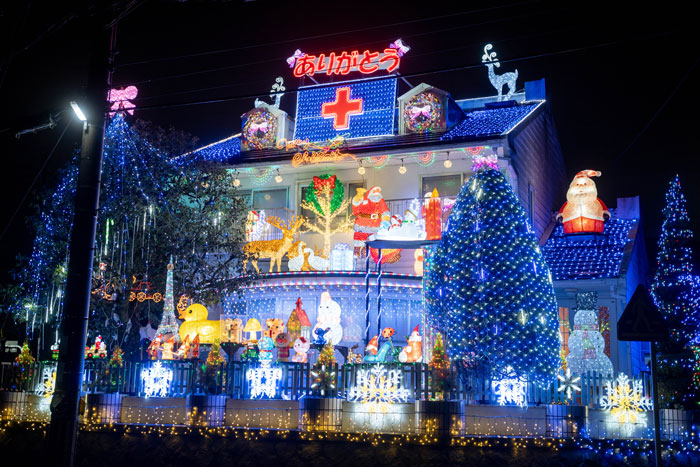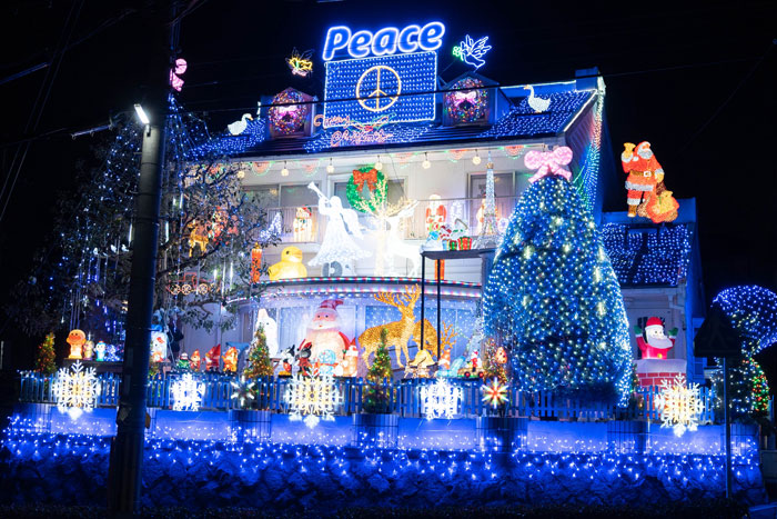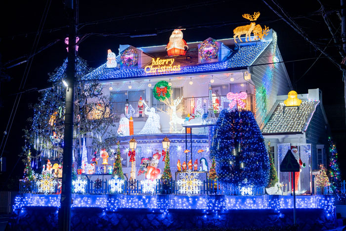 折居台のイエナリエ、2025年は小屋根の上に大きなサンタさんが登場!【京都府宇治市】