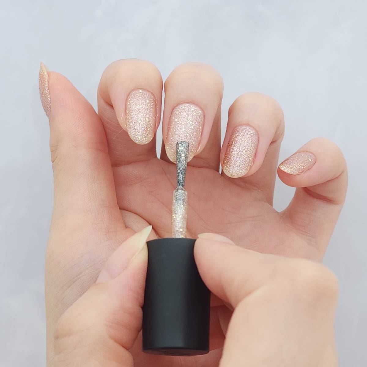 続いてブラウンベージュラメのマニキュアを塗ります。