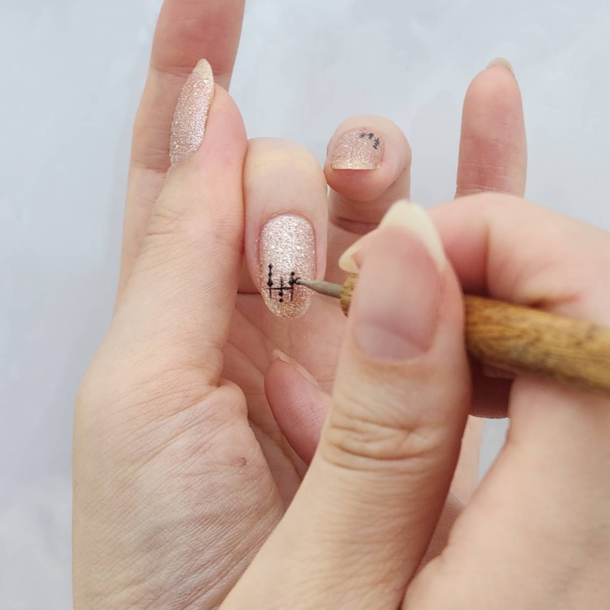 次に、黒のライン用マニキュアでの線を引いていきましょう。