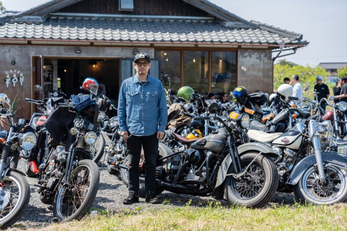 ハイドラグライドのチョッパーを長年走り続けるウエスコ・ジャパンディレクターを務める河北さん。アウターはシップジョンのランブリンジャケット、ブーツはクォーターに艶やかなコードバンを採用するリミテッドモデルだ。