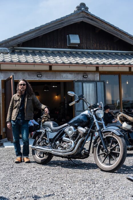 いつかはハーレーに乗りたいと思っていた本島さん。念願かなって、今年に入ってから手に入れたのが現在の愛車だ。「好きなところはワンオフのタンクで、クビれからエンジンが見えるのがいい。マフラーの造形と色、シッシーバーのツイストも気に入ってます」