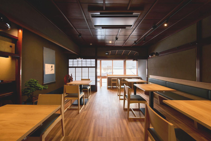 和モダンテイストで落ち着いた空間で、能登牛やのどぐろを使用した、オリジナルのひつまぶし「じものまぶし」をはじめ、旬の素材を活かした一品料理がいただけます。