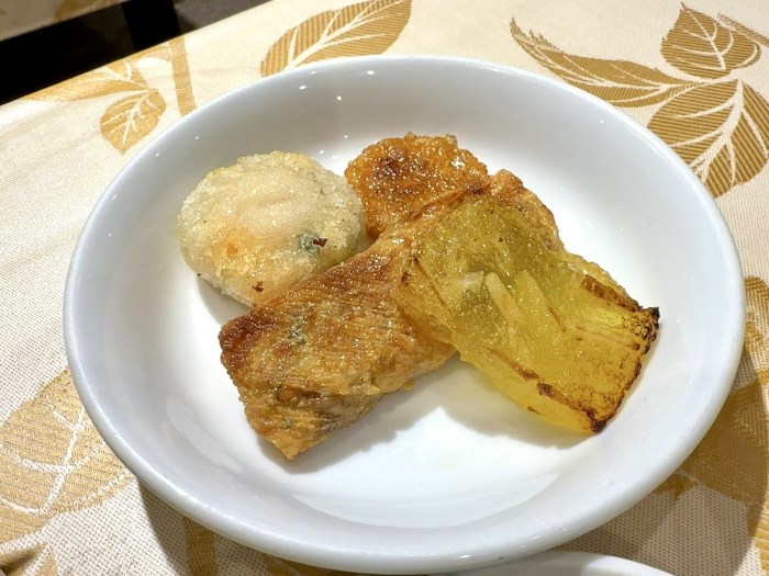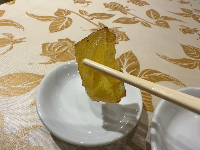 デザートタイムはまた別にあるが、料理の途中にも甘味がちょいちょい混じる。塩っぱい点心は「鹹点心(かんてんしん)」、甘い点心は「甜点心(てんてんしん)」と呼び分けるのだそう。