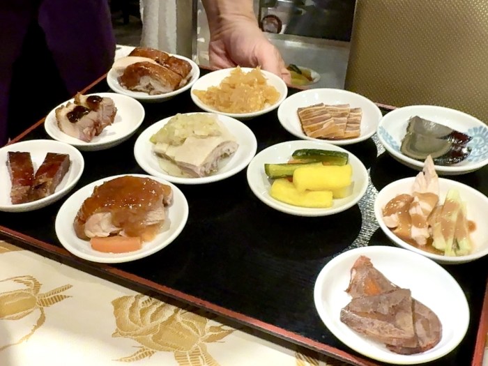 料理を満載したワゴンが縦横無尽に店内を行き交うが、お客さんはゆったり座ったままでいい。たとえば前菜なら、ずらりと並べられた小皿から好きなものを指さし注文する。