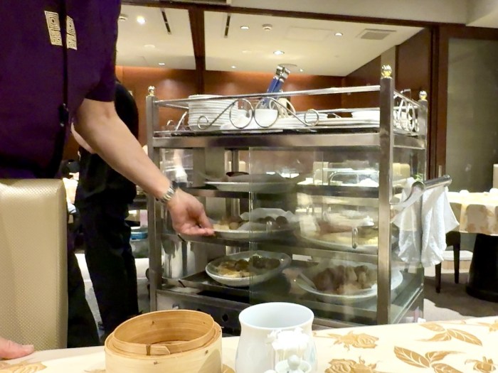 ここに第三勢力とも呼べる、もうひとつのスタイルがある。テーブルに届いた皿から好きなものを選ぶワゴンスタイルだ。京都市「老香港酒家京都(オールドホンコンレストラン京都)」には、香港伝統のワゴンサービスによる飲茶食べ放題コースがある。