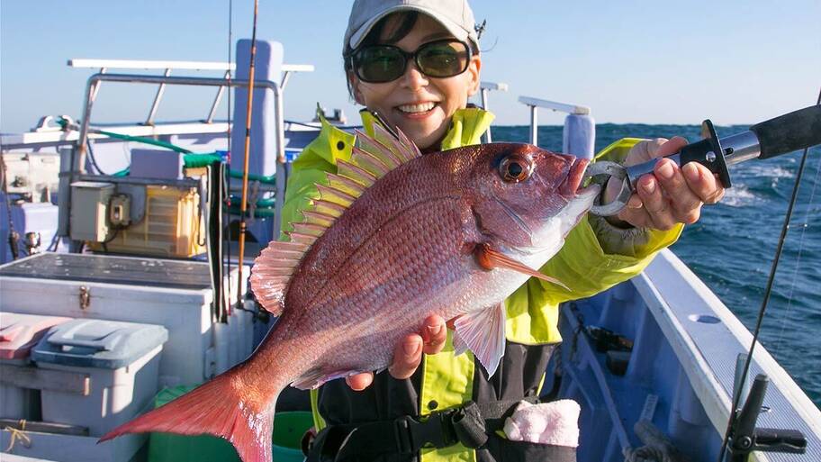 撮影を終え釣りを再開すると、私にも底から10mほどでアタり、フッキングに成功。なかなかの重量感。慎重に巻き上げ、途中の反撃もいなしながら浮かせると同じくF5クラス。リーダーをつかんで抜き上げようとした瞬間にまさかのフックオフ…。
