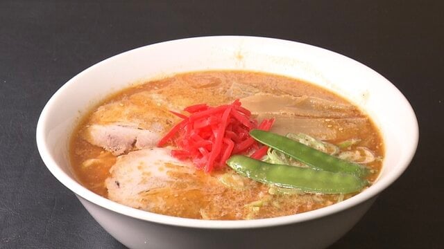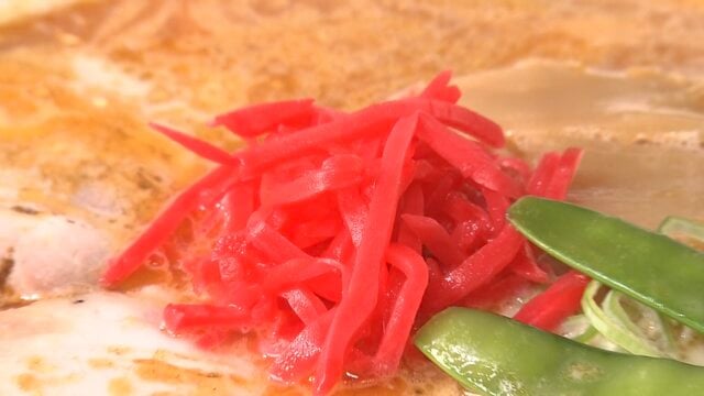 センターを飾る紅しょうがは、濃厚な豚骨の効いたかえしのスープを支えています!