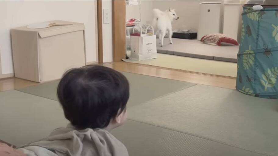 徐々に大きく成長していく男の子ですが、生まれた頃から見てきたわんこたちにとって、まだまだ小さな赤ちゃんという印象なのでしょう。隣に寄り添ったり、時には一緒に鼻の頭に鉛筆を乗せて遊んでみたり♪