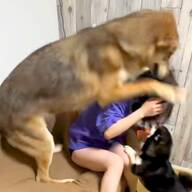 生まれた頃から大型犬たちと過ごしてきた男の子