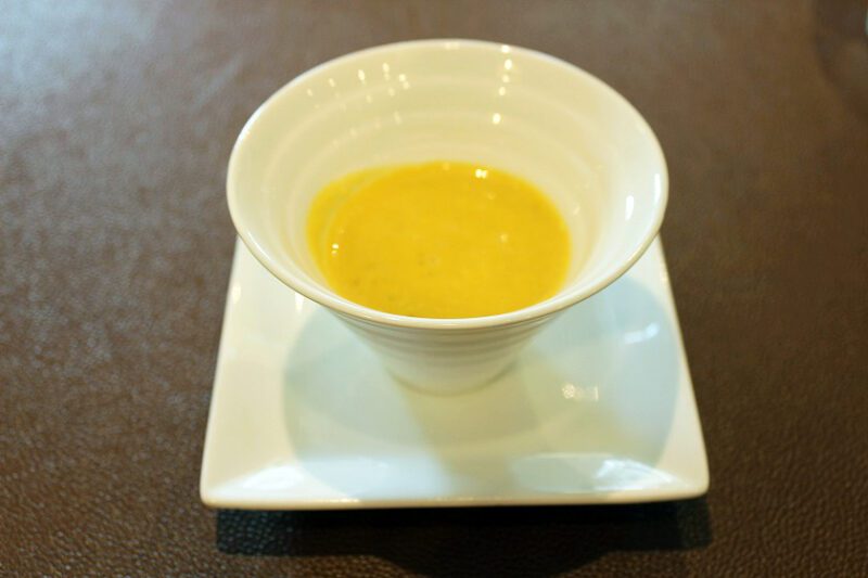 次は「かぼちゃのポタージュ」。すくなかぼちゃとくりかぼちゃの2種をミックスしていて、かぼちゃの優しい甘みとなめらかな舌触りが絶妙です。
