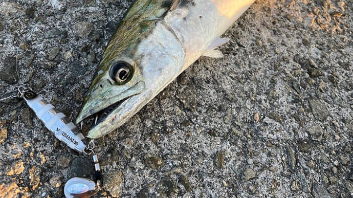 続いてこの日絶好調の釣友はメッキ、アジ、メッキとアジ族をメタルジグで乱獲。私にメッキのヒットはなかったが、5gのメタルジグでもアジをキャッチでき、新しい扉を開くことができた。