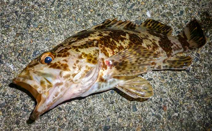 ここで日没を迎えたため、近くの常夜灯下に移動する。さあ、ここからアジング本番だ。エステルセッティングのアジングタックルに持ち替える。1gのジグヘッドを結びキャスト。水深が浅いのか、タケノコメバル、カサゴが釣れてしまう。