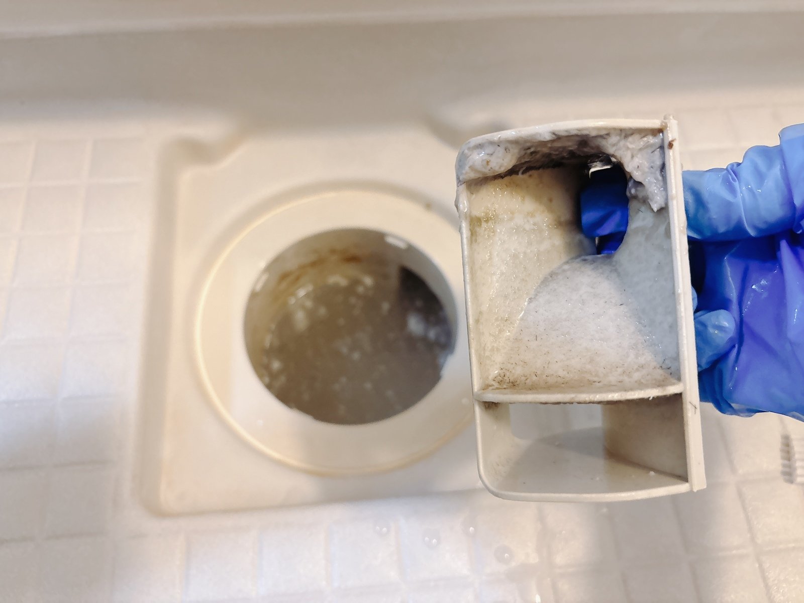 整流ブロックを外さずに掃除をしても、奥のヘドロは残ったまま……。汚れがずっと放置されると、ひどい悪臭を発する原因になります。
