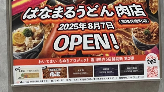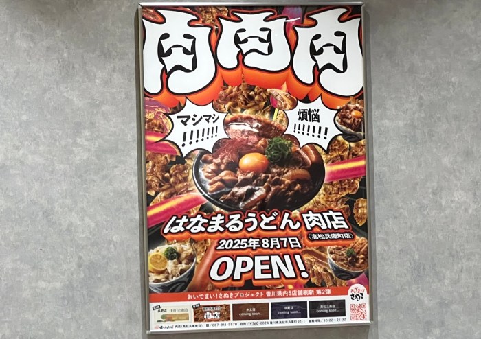 この「はなまるうどん 肉店(高松兵庫町店)」は、創業25周年を記念して始動した「おいでまい!さぬきプロジェクト」の第2弾として誕生したとのこと。2025年8月7日にオープンしたばかりだ。