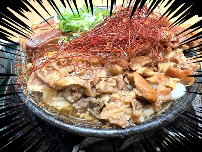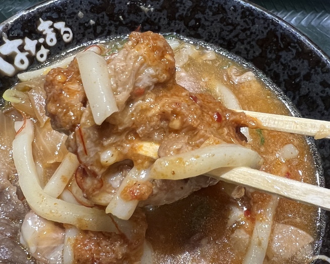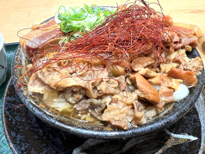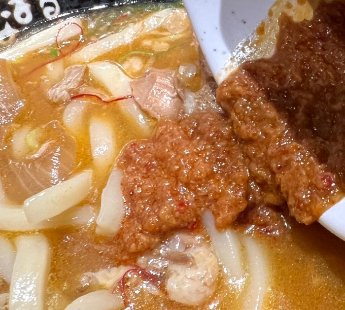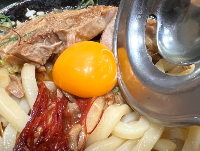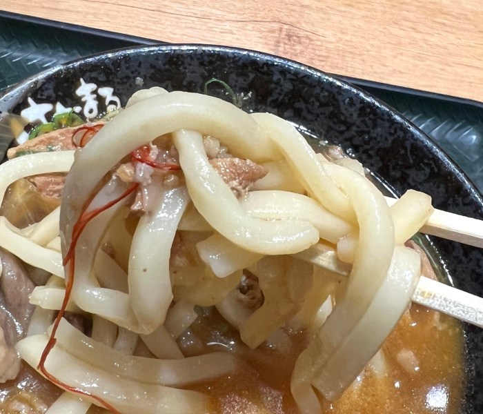 これを加えた瞬間、もう完全に「肉うどん」の頂点だと確信した。ガーリックの香りが広がり、肉の旨味をさらに引き立てる。もはや「背徳グルメの極致」と言えるだろう。