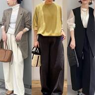 ジャケットとワイドパンツの組み合わせは鉄板で、上下のバランスがとりやすくスタイルアップ効果も抜群。