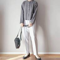 リラックス感のある着こなしでも、ジャケットが入ることでラフすぎず品のある印象に仕上がります。