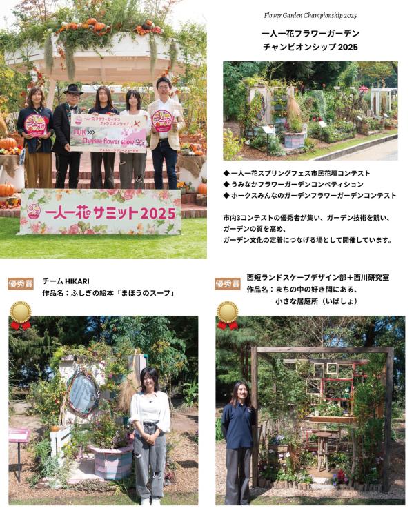 その中から、優秀賞には、『チームHIKARI』と『西短ランドスケープデザイン部+西川研究室』の2つの団体が選出されました。