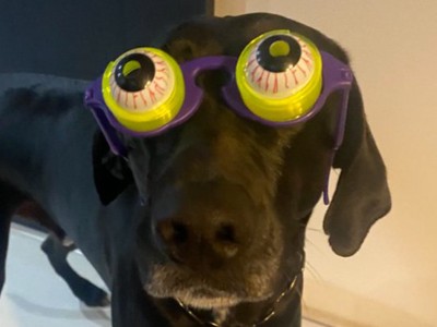 この日、飼い主さんはパーティー用のサングラス、血走った目玉が飛び出しているように見えるおもしろグッズをソルくんに付けてみることにしたのだそうです。