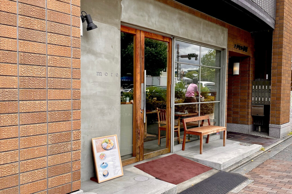 残暑厳しい夏の午後。遅めのランチに選んだのは、京阪[神宮丸太町駅]から徒歩1分の場所にある[more(モア)](京都府京都市左京区)。コンクリの外壁に大きなガラス扉が目印の、おしゃれさと温かみを併せ持つカフェです。