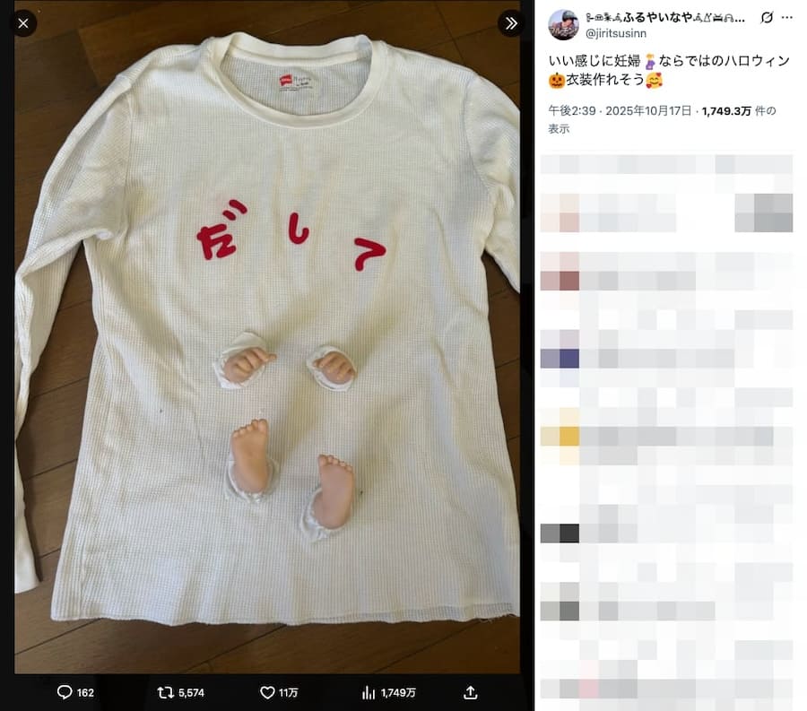このほど「妊婦ならでは」の仮装を選んだXユーザーの投稿が、いいねが11万件を超える大反響を呼んでいます。