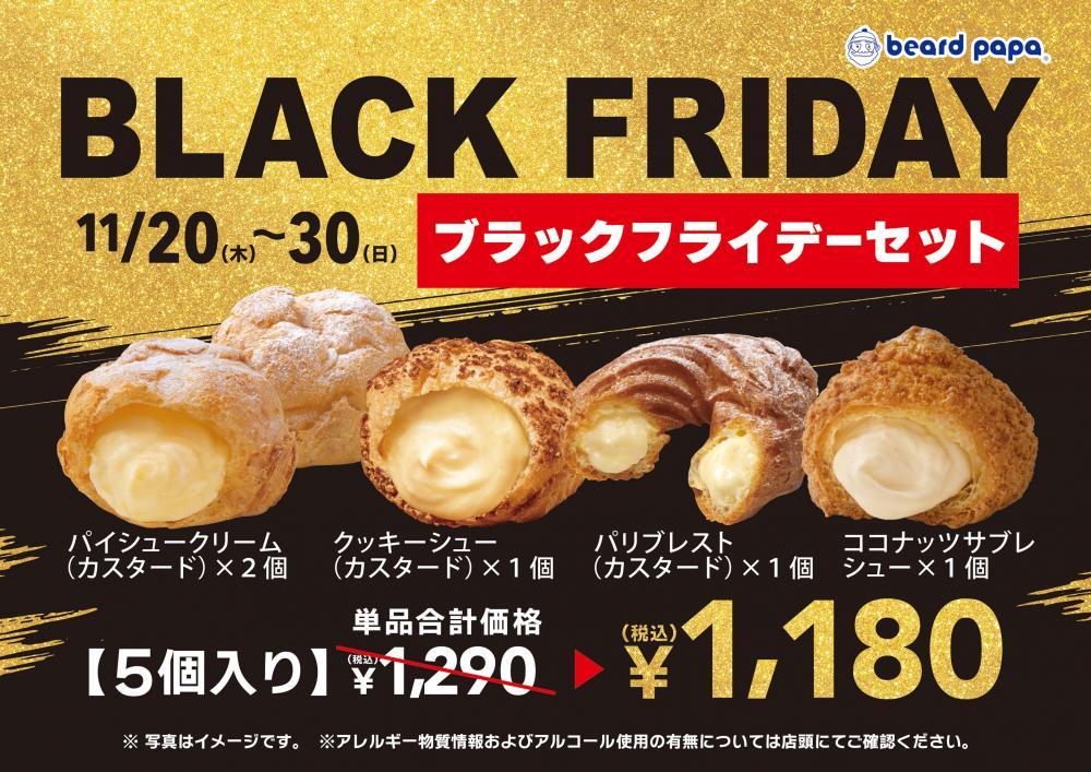 シュークリーム専門店のビアードパパは、2025年11月20日から30日まで、特別価格の「ブラックフライデーセット」を販売しています。