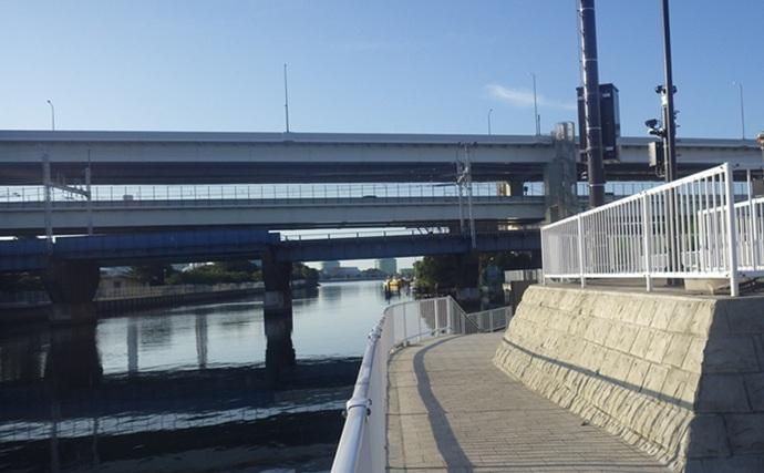 横浜市磯子区を流れる掘割川は、横浜エリアの代表的なハゼ釣り場の一つ。ポイントは河口近くの八幡橋から中村橋にかけての約2kmで、中でも八幡橋付近はJR根岸駅から近く、シーズン中は比較的釣り人が多いポイントとなっています。