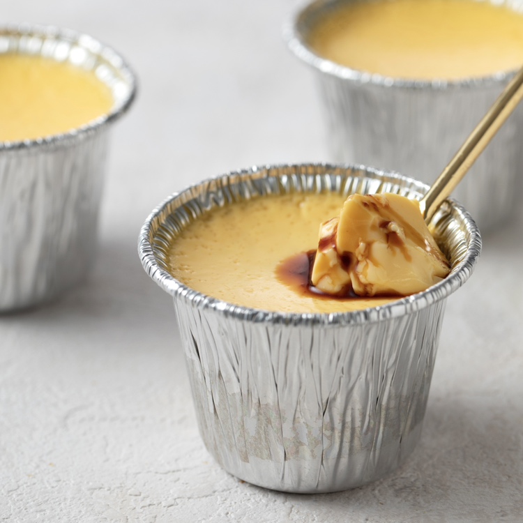 卵と牛乳のシンプルな味わいに苦めのカラメルソースが絶妙な大人のプリン。昔から変わらないアルミの容器も伝統として引き継がれています。