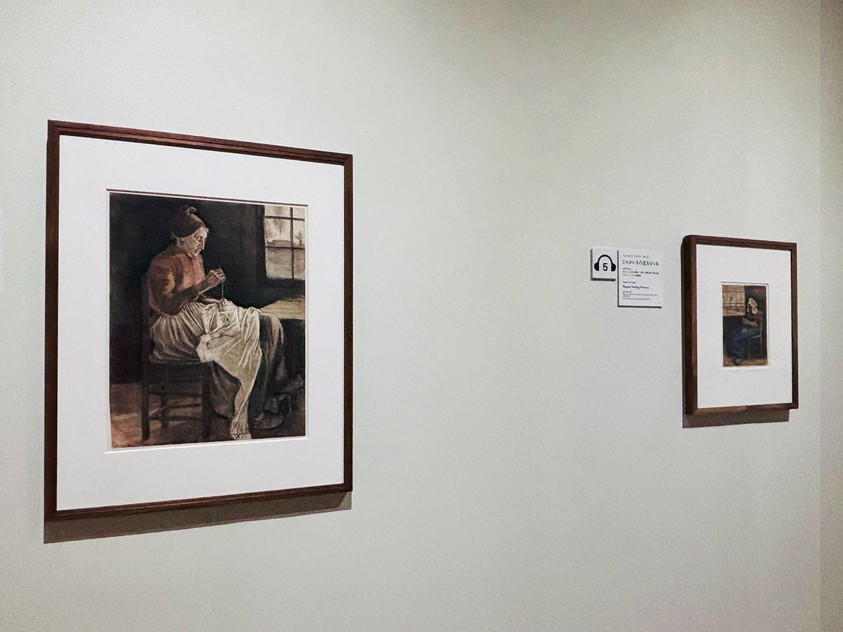 フィンセント・ファン・ゴッホ 左:《縫い物をする女》 1881年10月-11月、右:《じゃがいもの皮をむく女》 1881年9月