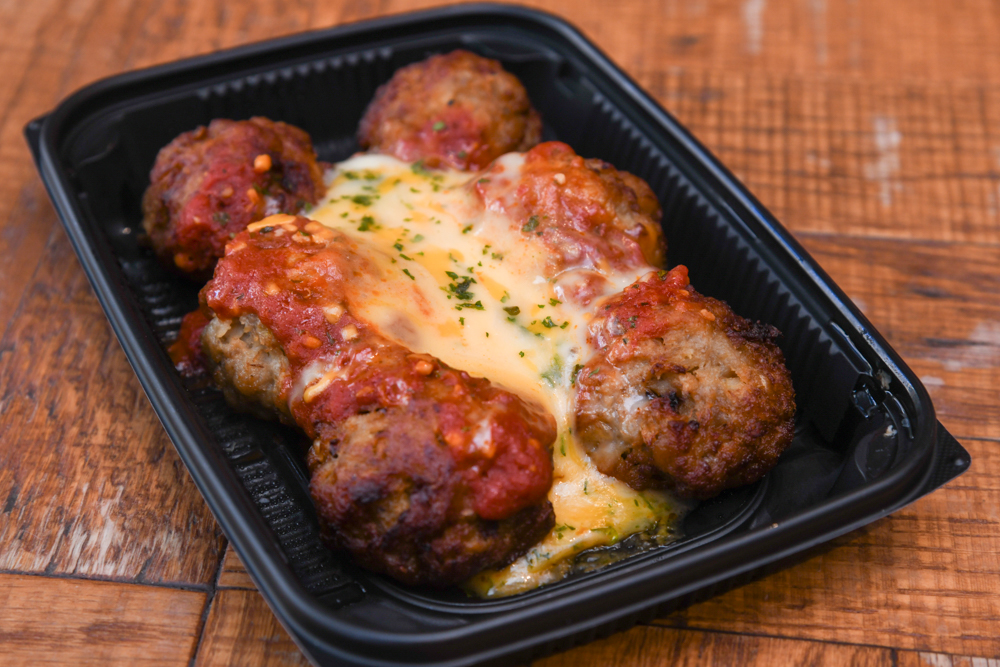 続く『成城石井自家製 3種チーズの国産豚肉団子』は、洋風の肉団子の上にレッドチェダーを使用したチーズソースとトマトソースをかけ、さらにレッドチェダーチーズ、モッツァレラチーズ、ゴーダチーズをトッピングした一品。説明に用いたチーズの単語数からも想像できるように、その見た目は肉団子の平原の中をチーズの大河が流れる、チーズ好きを放っておかないビジュアルだ。