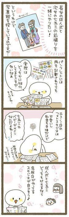 連載第297話と298話にて、いつも七五三の前撮りで利用していた写真館に長女の成人式の前撮り&振袖レンタルを頼もうとしたら閉店していたお話を書きましたが、今回はその続きです。長女の成人式と次女の七五三の前撮りを一緒にできたら2人とも可愛いんじゃないかな~と思い、同時に前撮りできる写真館を探し始めた私。