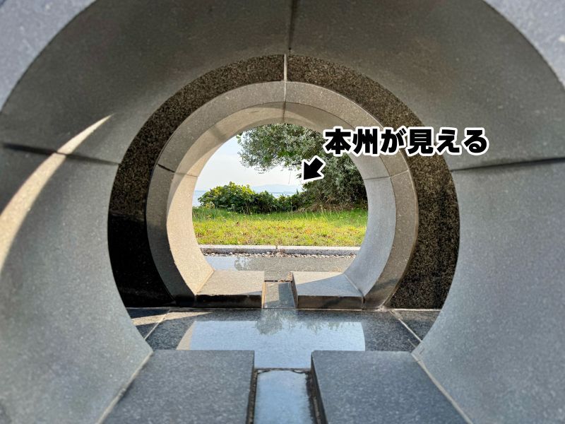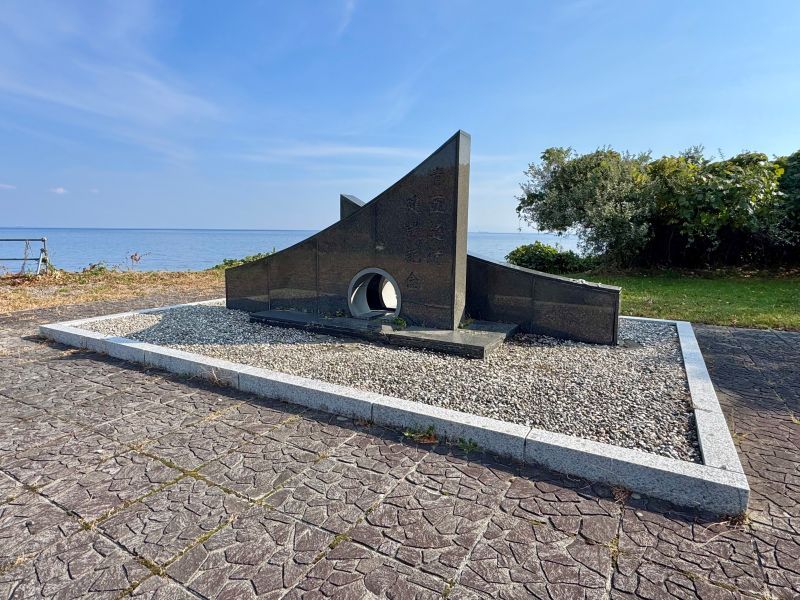 対岸に本州を望む津軽海峡に面した立地と、記念碑にぽっかりとあいた、トンネルを彷彿とさせる穴。……もうお分かりですね?