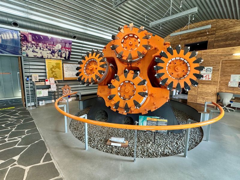 入館後すぐに一際目を引くこちらの機械は、3.6mの大きさで岩盤を削りながら進むことができるボーリングマシンです。青函トンネル記念館では、工事で使用された重機械をはじめとして、トンネル建設の背景、交通手段の変化、そして将来的に札幌までの延伸が決まっている北海道新幹線の情報など、北海道と本州間における移動の物語を過去から未来まで展示しています。