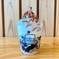コーヒーゼリー(520円)は、まずソフトクリームと散りばめられたチョコの風味を堪能。カップの側面には細かく刻まれたコーヒーゼリーが入り、甘いクリームとほろ苦いゼリーが合わさって口の中が“ほろあま”に。