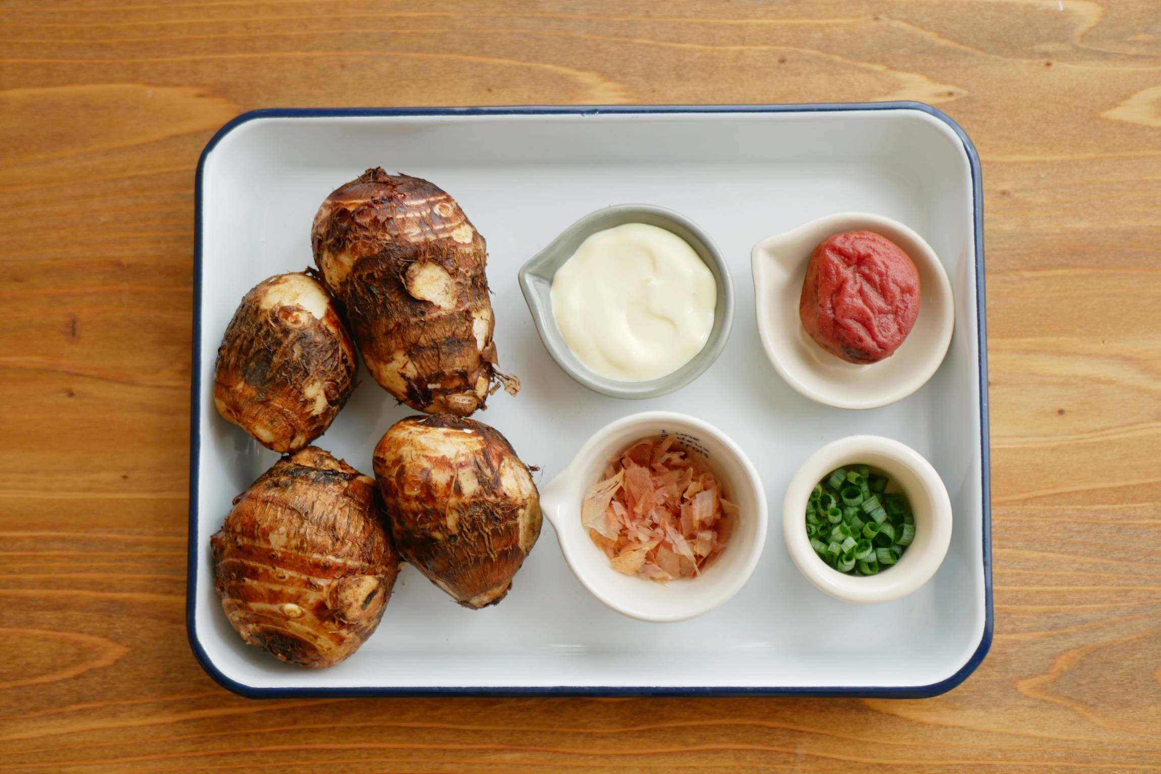里芋は軽くマッシュしてマヨネーズと梅肉を和えるだけで、おいしいサラダに!甘酸っぱさがあとを引き、おつまみとしてもおすすめです。