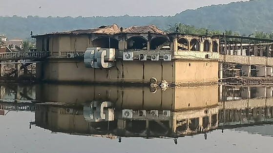 ピリ辛豆キーマとバターチキンのカレー合盛り(1,400円)。スープ付き。