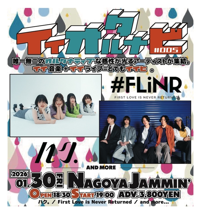 名古屋のイベンター・サンデーフォークプロモーションが主催する音楽イベント『イイオルタナビ #005』が、2026年1月30日(金)にNAGOYA JAMMIN’にて開催されることが決定した。
