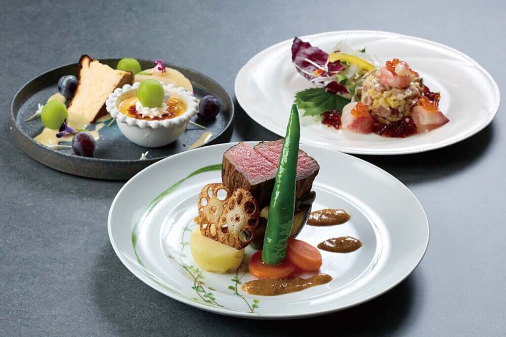 1日限定3組のディナーコース。和と洋のエッセンスを織り交ぜた多彩な料理を堪能できます。